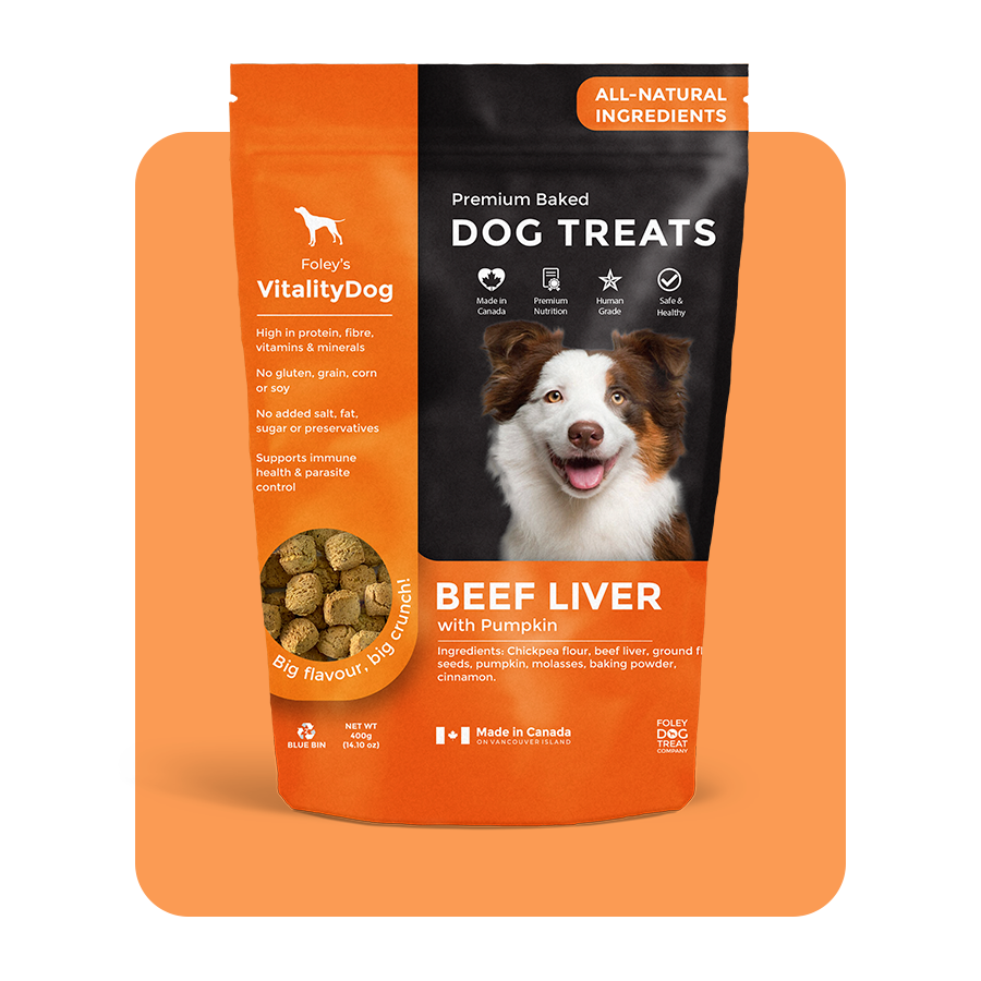 Ingredients: Chickpea Flour, Beef Liver, Ground Flax Seeds, Pumpkin, Molasses, Baking Powder, Cinnamon.