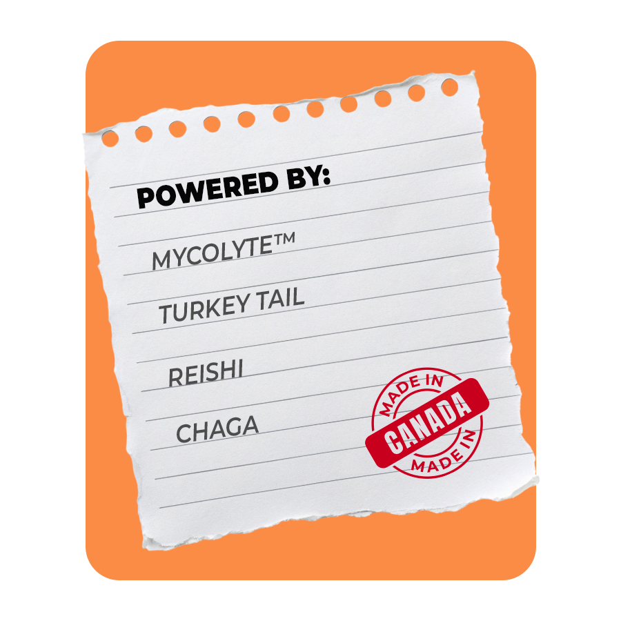 POWERED BY: MYCOLYTE™, TURKEY TAIL, REISHI, CHAGA.